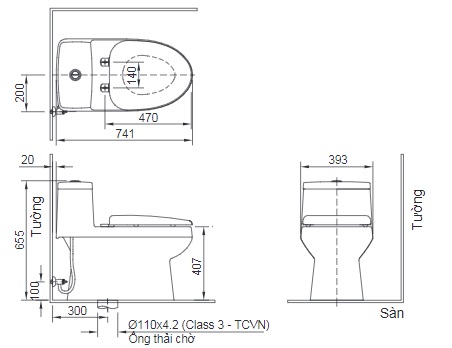- Tâm thoát: 300mm (+-5).