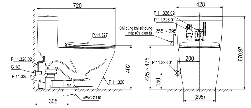 Bản vẽ kỹ thuật bồn cầu P.11.320