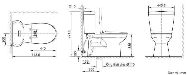 Tâm thoát : 300mm (+-5)