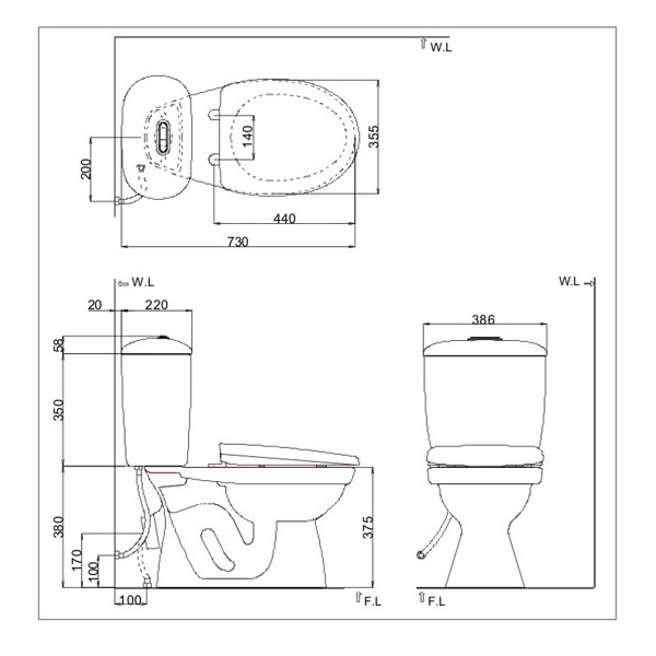 Bản vẽ bàn cầu 2 khối Inax C-306VPT: