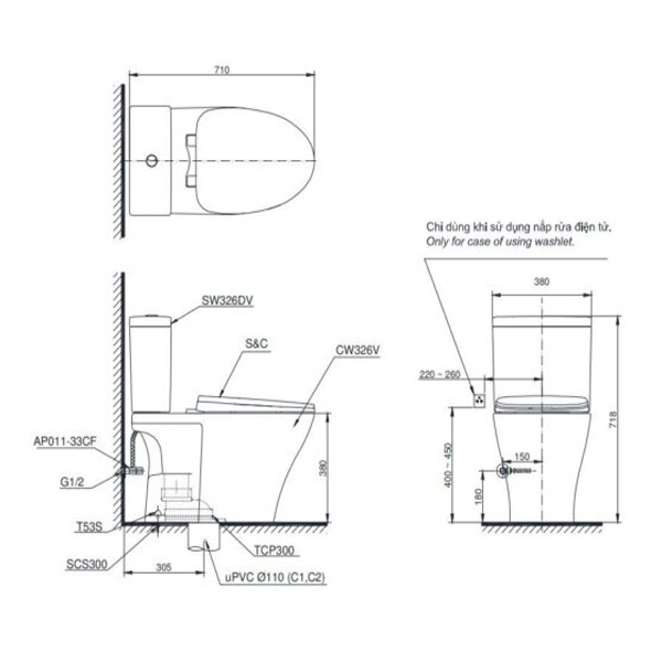 Kích thước: 710 x 380 x 718 mm (DxRxC)