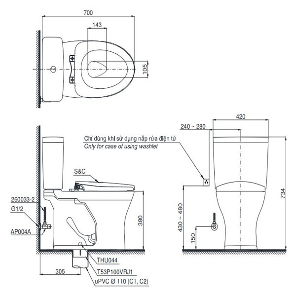 Phù hợp lắp đặt với nắp rửa điện tử WASHLET (tùy chọn)