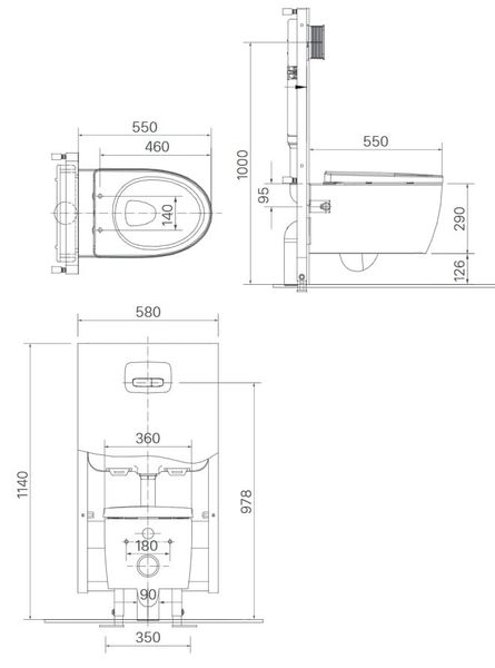 - Kích thước bồn cầu: 550x360x290 mm (DxRxC)