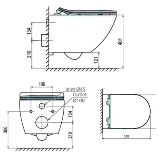 Bản vẽ kĩ thuật bàn cầu treo tường nắp êm Viglacera V.13.PRO