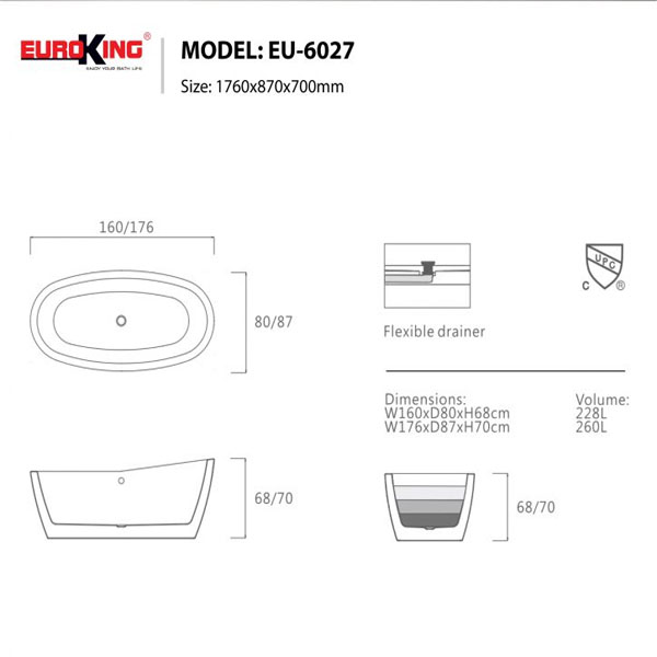 Bồn tắm Euroking EU-6027(White Glossy)