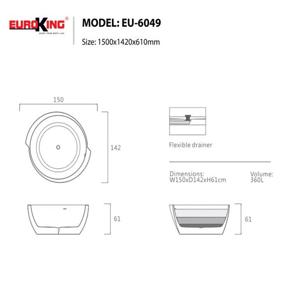 Bồn tắm Euroking PAULA EU-6049(White Glossy)