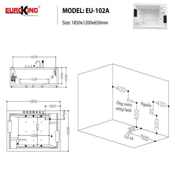 Bồn tắm massage Euroking EU – 102A