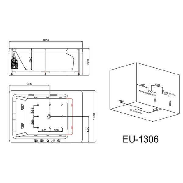 Tên sản phẩm: Bồn tắm massage Euroking EU-1306 (With Skirt)