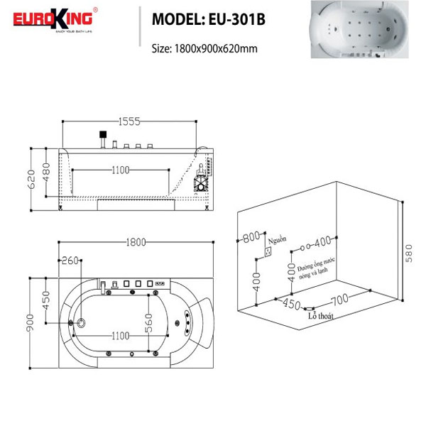 Bồn tắm massage Euroking EU – 301B