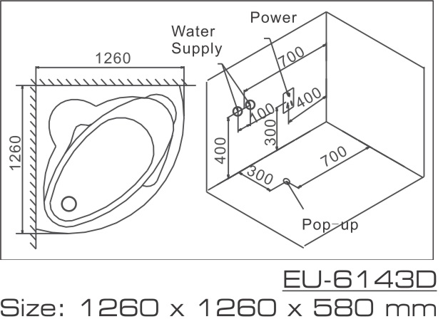 + Đường cấp nước: Ø 15; Đường thoát: Ø42 ÷ Ø48
