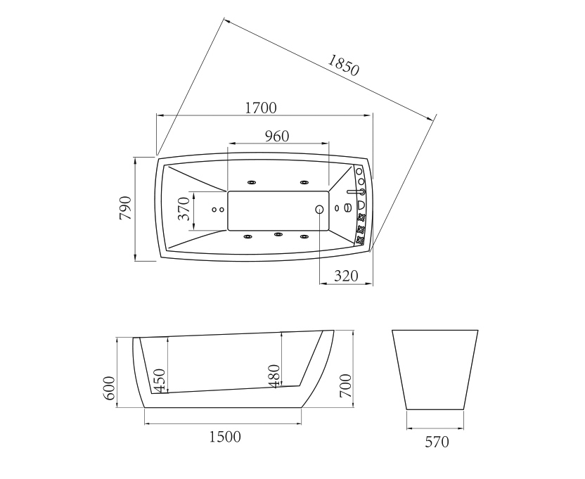 Kích thước (size): Chiều dài : 1700 mm, chiều rộng : 790 mm, chiều cao : 700 mm.
