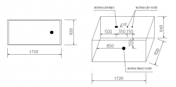 Kích thước (size): Chiều dài : 1720 mm, chiều rộng :820 mm, chiều cao : 640 mm.