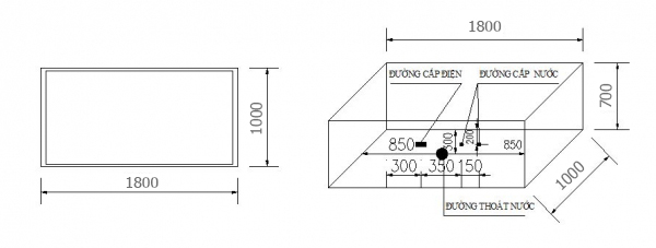 Kích thước (size): Chiều dài : 1800 mm, chiều rộng : 1000 mm, chiều cao : 700 mm.