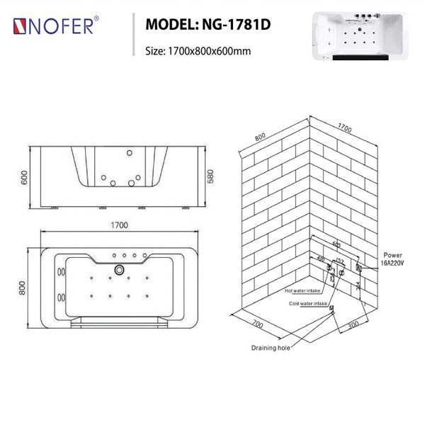 Bồn tắm massage Nofer NG-1781D