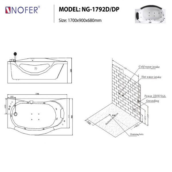 Bồn tắm massage Nofer NG-1792D