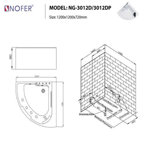 Bồn tắm massage Nofer NG-3012D/3012DP