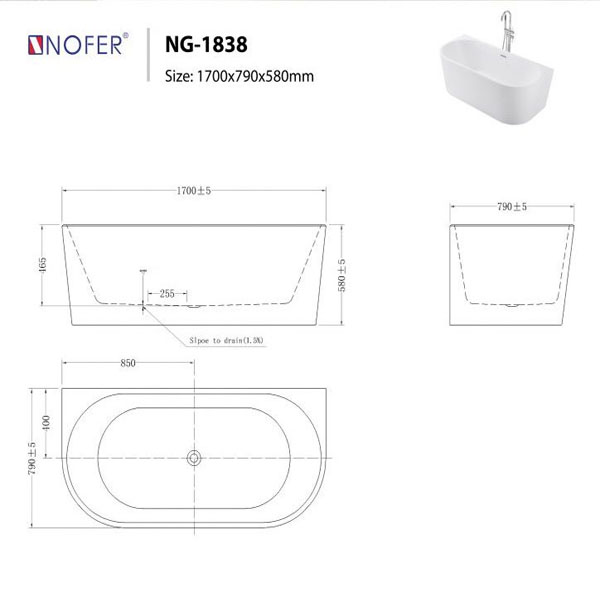 Bồn tắm Nofer NG – 1838/ 1838 PLUS