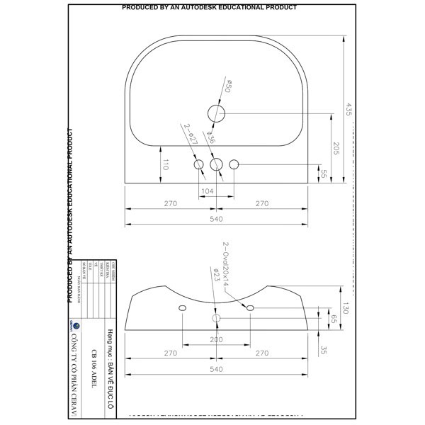 Kích thước: D540xR435xC130
