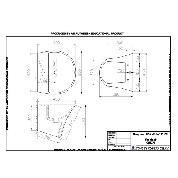 Tên sản phẩm: Chậu rửa Ceravi Hàn Quốc CBK70