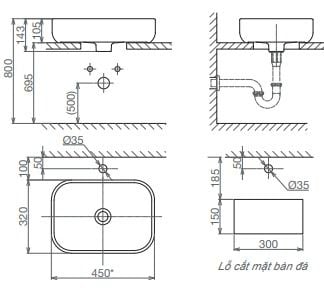 Bản vẽ kỹ thuật chậu rửa dương bàn Viglacera V25