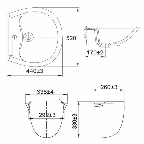 Bản vẽ kỹ thuật Chậu rửa treo tường Sanfi S507 + chân S507