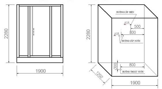 Kiểu dáng:Hình chữ nhật, đế thấp có 3 chiều yếm lắp áp tường.