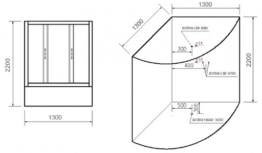 Kích thước (size): Chiều dài: 1300 mm, chiều rộng: 1300 mm, chiều cao: 2200 mm, đế cao: 520 mm.