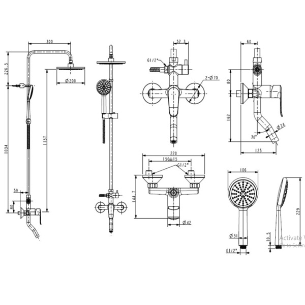 - Tính năng: Cây tắm cây American WF-9088 bao gồm đầu sen phun mưa, bộ trộn và tay sen