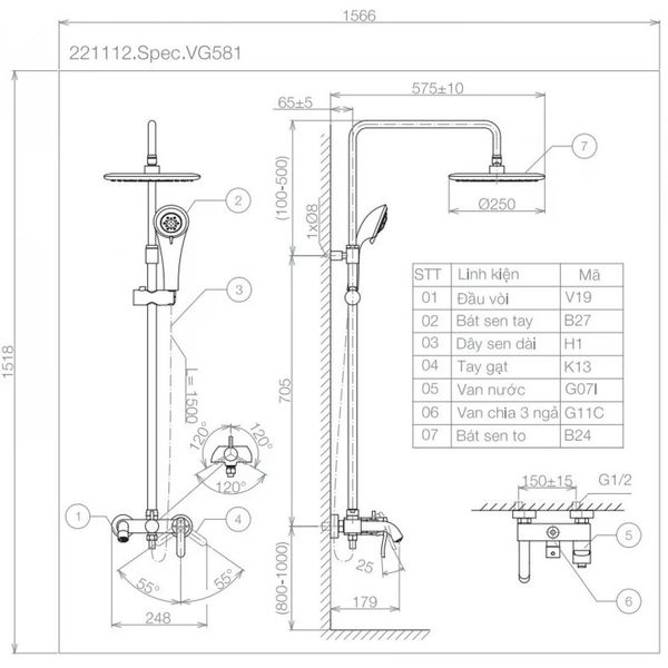 Bản vẽ kĩ thuật sen cây Viglacera VG581