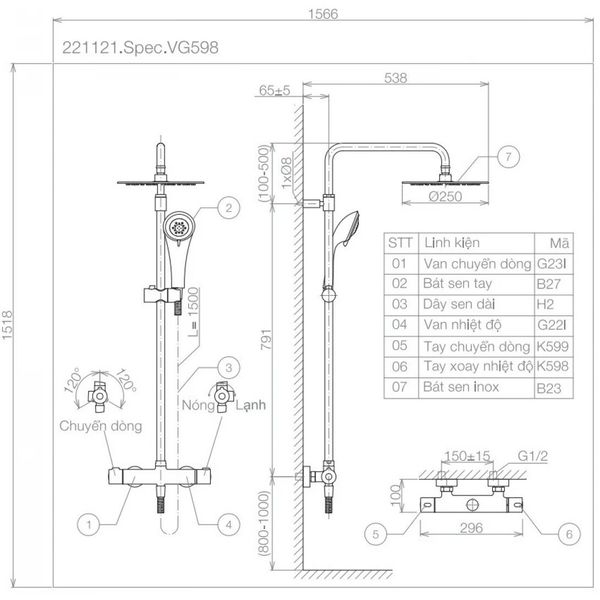 Bản vẽ kỹ thuật sen cây Viglacera VG598