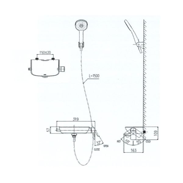 Bản vẽ kỹ thuật sen tắm nóng lạnh INAX BFV-613S:
