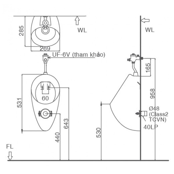 Tên sản phẩm: Tiểu nam Inax U-117V.