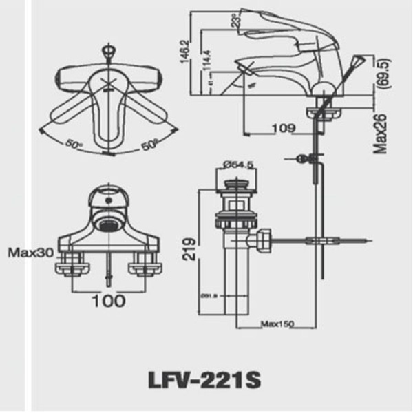 Bản vẽ kĩ thuật vòi chậu nóng lạnh Inax LFV-221S