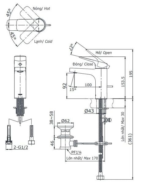 - Vòi Lavabo TOTO nóng lạnh (bao gồm bộ xả, không bao gồm ống thải chữ P)
