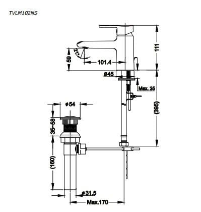 Bản vẽ vòi chậu nóng lạnh Toto TVLM102NSR