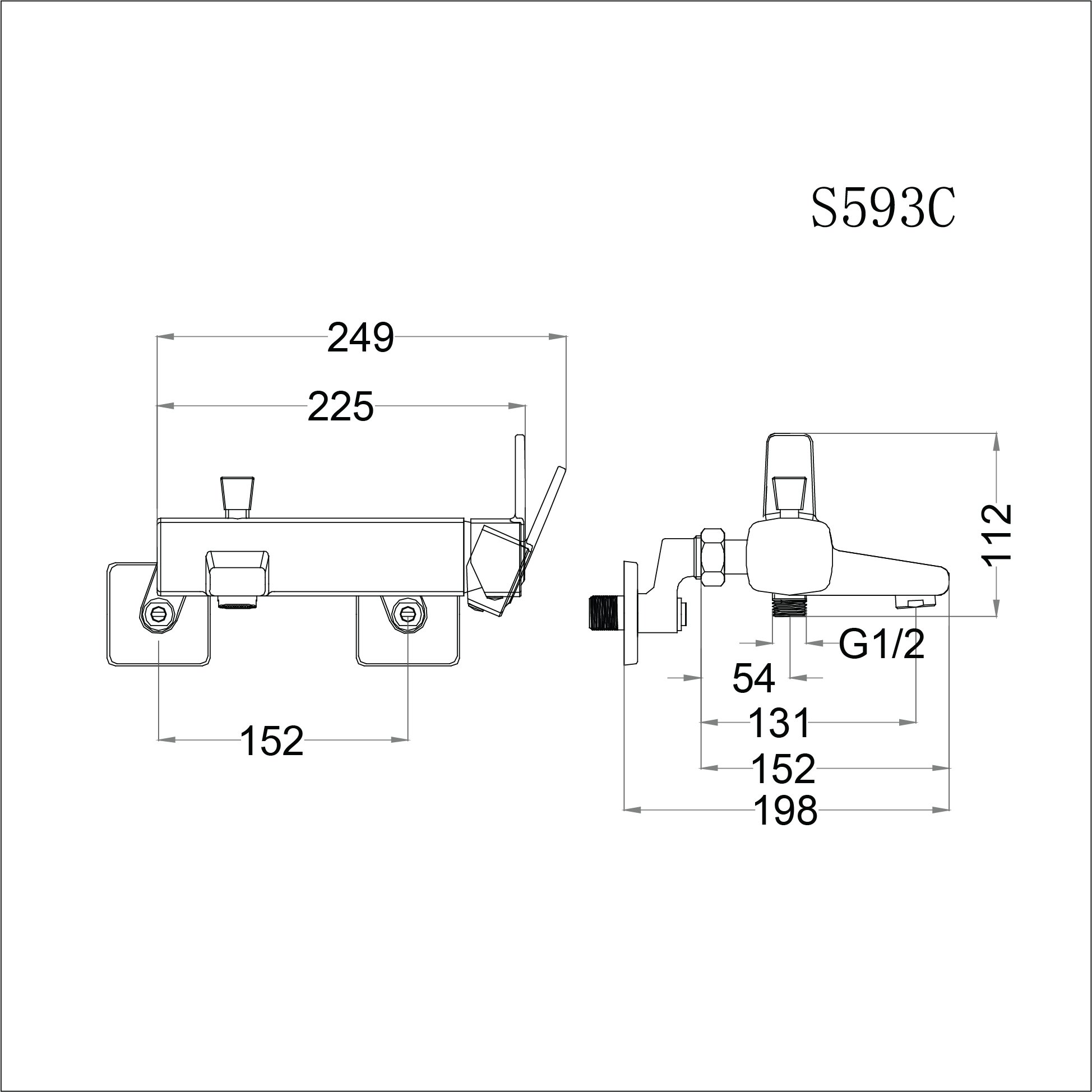 Bản vẽ kỹ thuật vòi sen gạt nóng lạnh Caesar S593C