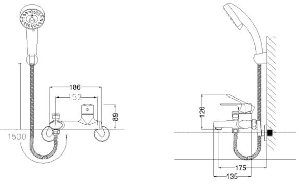 Bản vẽ kĩ thuật vòi sen nóng lạnh Caesar S433C Tay 3 Chế Độ