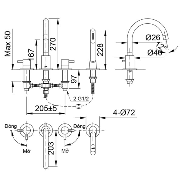 Áp lực nước: 0.05 MPa ~ 0.75 MPa